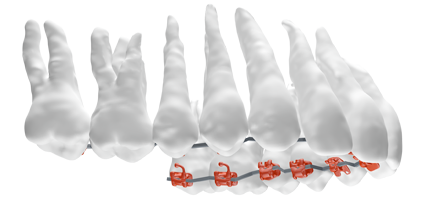 また、ワイヤーはニッケルチタン製の形状記憶合金です。金属が元の形状を記憶し、熱=患者の体温で元の形状に戻ろうとする力を利用して歯を直接所定の位置に動かします。これらのことにより矯正治療にかかる期間を大幅に短縮します。
